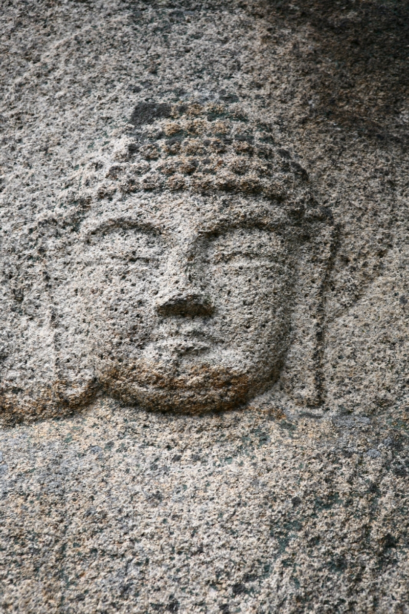 머리에는 작은 소라 모양의 머리칼을 붙여 놓았으며 원만한 얼굴에는 온화한 미소를 짓고 있다. 양 어깨에 걸쳐 내린 옷에는 평행선으로 이루어진 잔잔한 무늬가 밀집되어 있다. 손은 오른손을 무릎 위에 올려 손끝이 땅을 향하고 있으며 왼손은 배 부분에 놓여 있다. 불상은 연꽃이 새겨진 대좌 위에 양 발을 무릎 위로 올린 자세로 앉아 있으며, 머리광배와 몸광배는 2줄의 선으로 표현하였다.