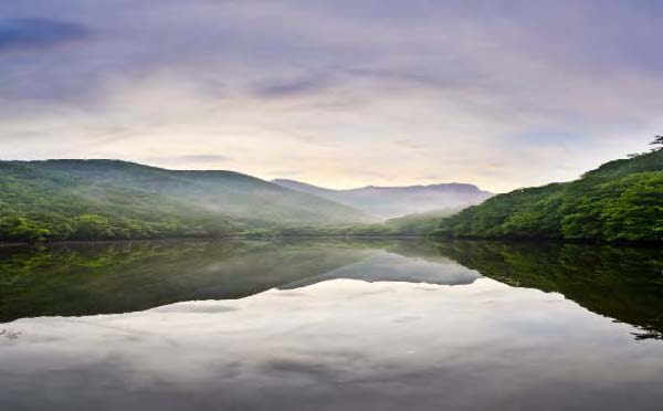 주산지는 비온 뒤의 청아(淸雅)한 풀잎과 별바위를 지나가는 낮은 구름과 안개, 가을 단풍과 저녁노을이 어우러져 신비롭고 아름다운 비경을 보여줌.